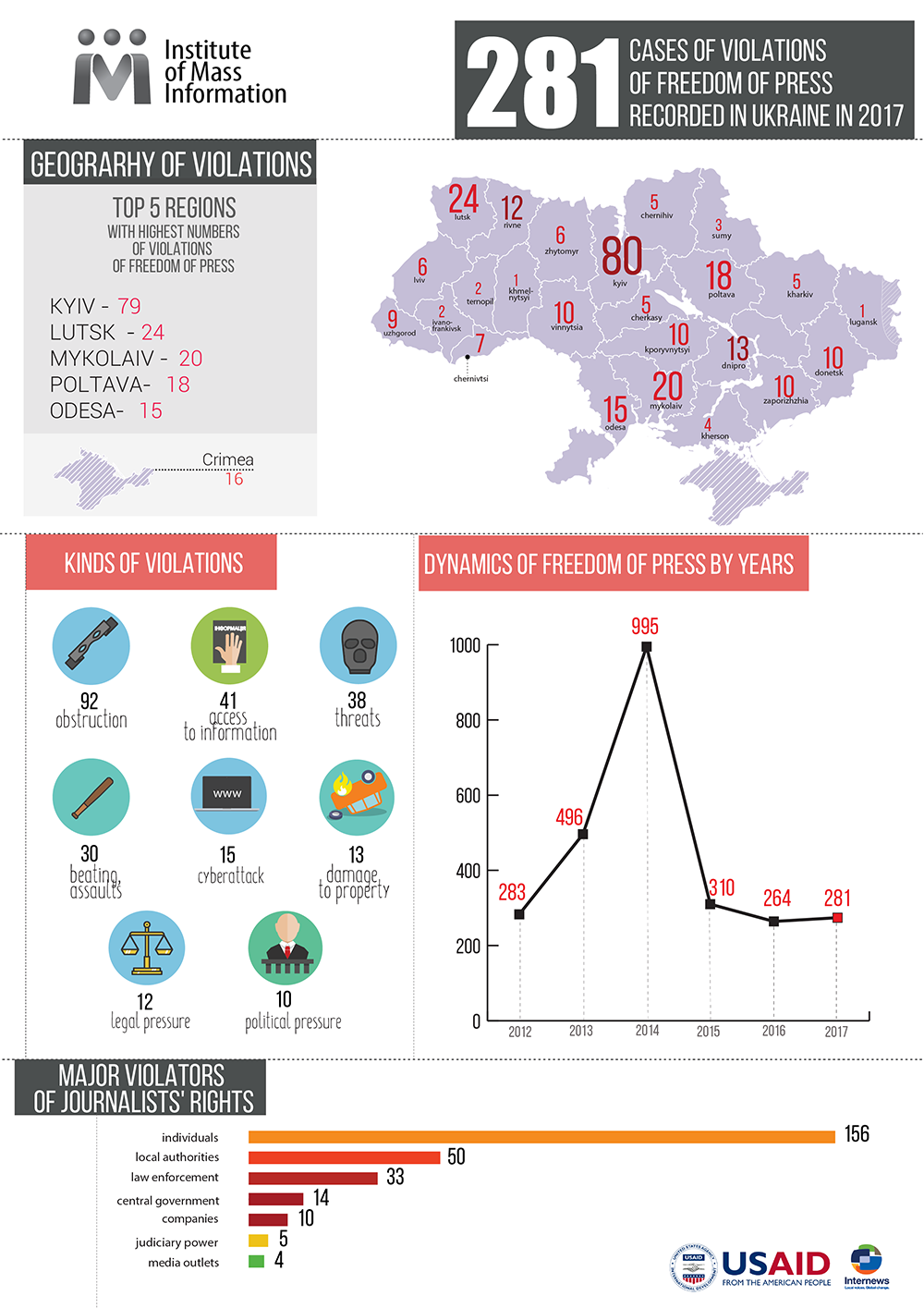 281 cases of violations of freedom of press recorded in Ukraine in 2017 (updated)