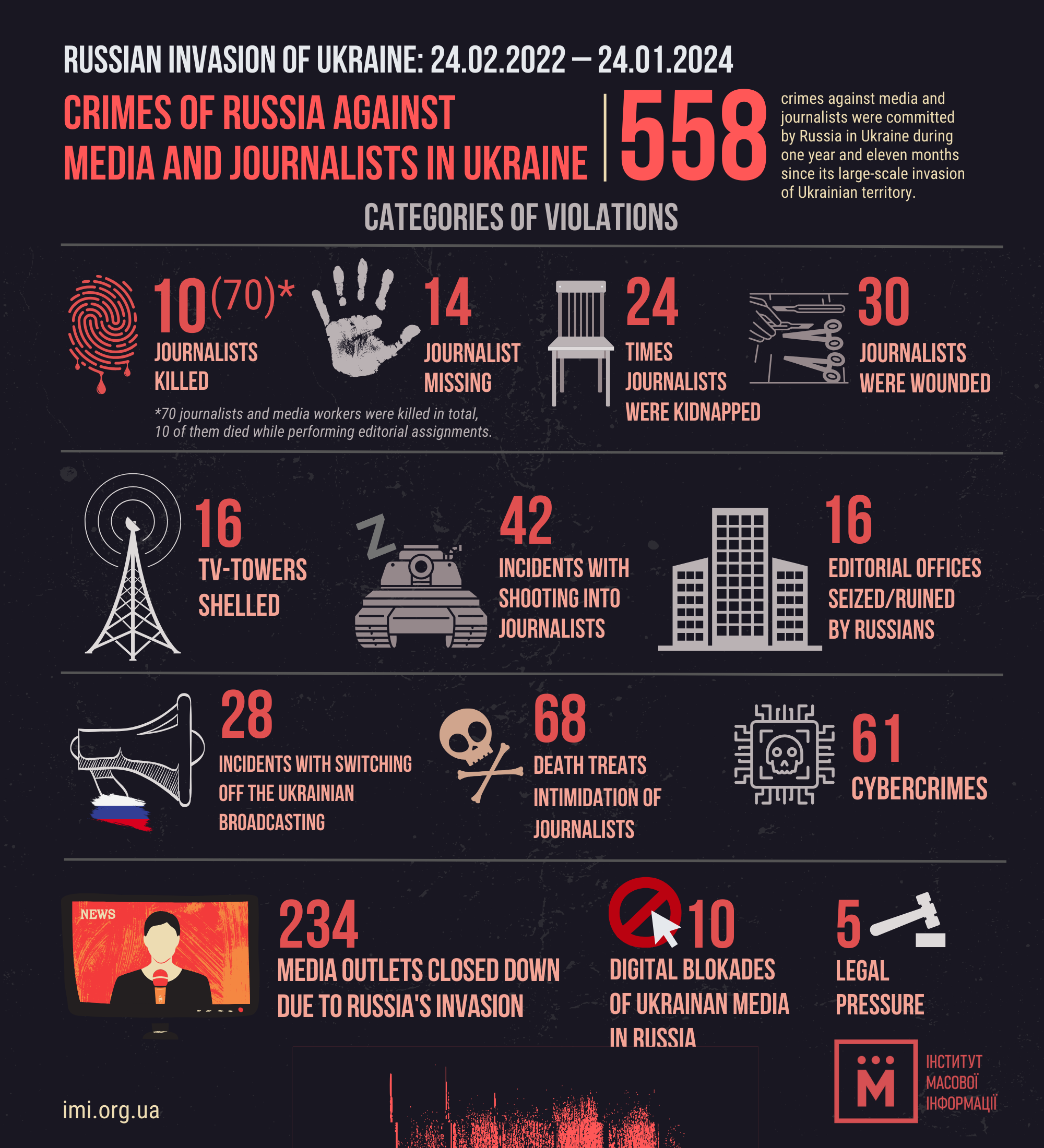 558 crimes against the media and journalists committed by Russia in the year and 11 months of the big war