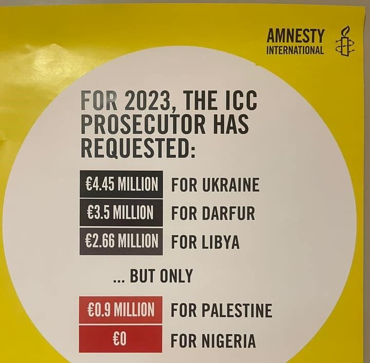Amnesty International has been distributing leaflets that say "selective justice is justice denied" at the 21st session of the Assembly of States Parties to the Rome Statute.