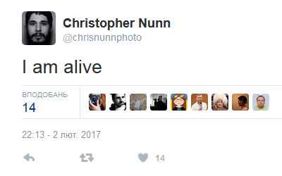 Christopher Nunn wrote on his Twitter account "I am alive".