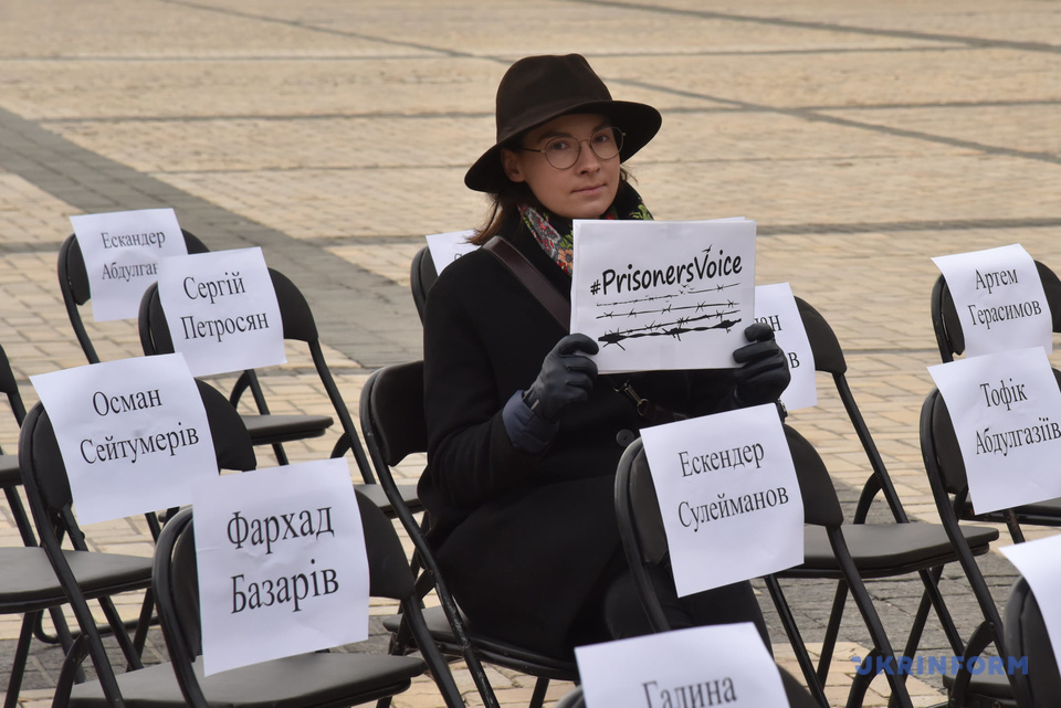 An action "Empty Chairs" took place on Sofia square in Kyiv in support of Ukrainian political prisoners in Russia and the occupied Crimea, as well as prisoners in the the Separate regions of Donetsk and Luhansk regions (ORDLO), as Ukrinform reported.