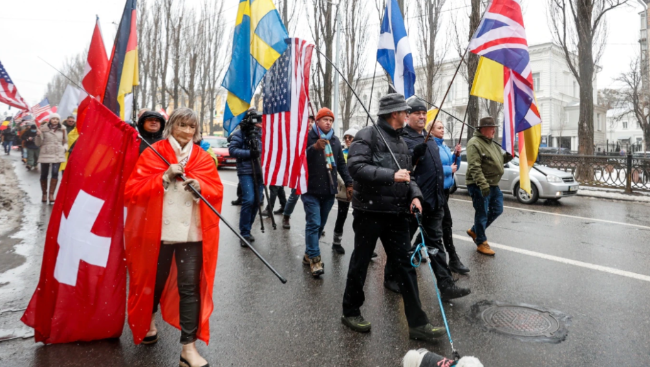 Foreign journalists and activists took to streets in Kyiv to support Ukraine