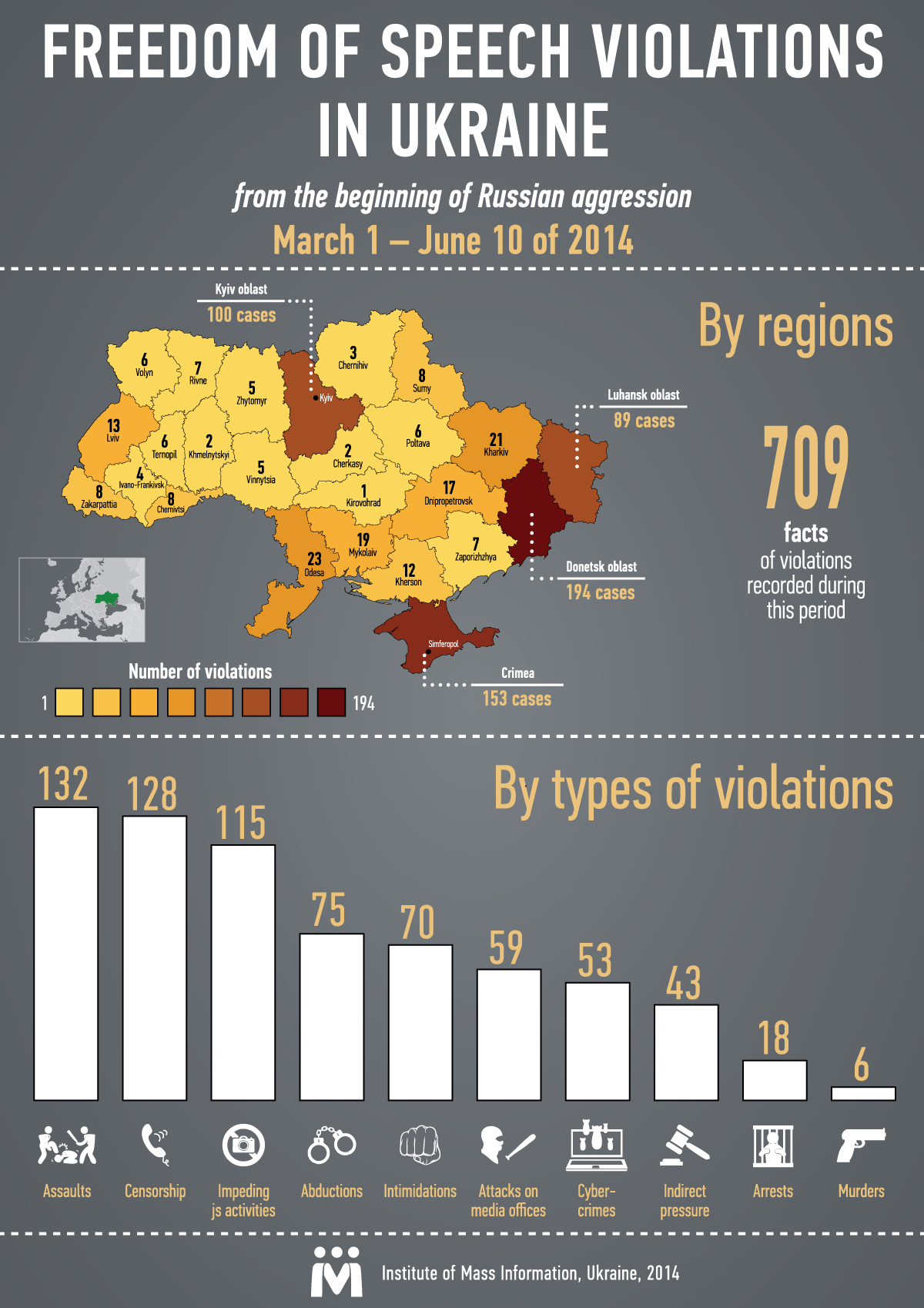 Freedom of speech violation in Ukraine from the beginning of Russian aggression (infographic)