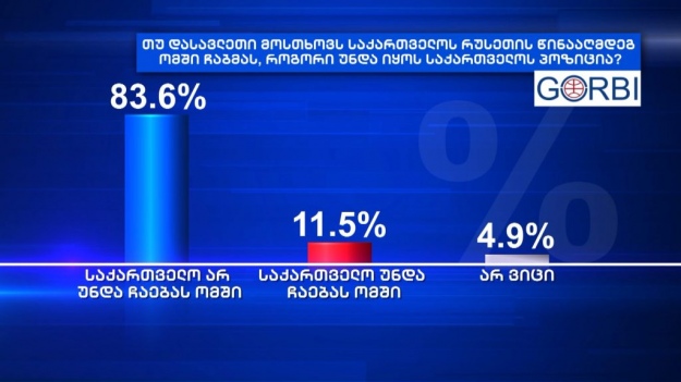 Question №4 was: "If the West asks Georgia to join the war against russia, what should be Georgia's position?" The vast majority (83.6%) said that Georgia should not get involved in the war.