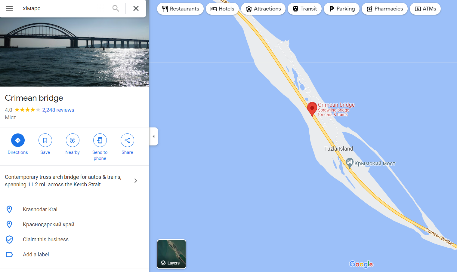 Google Maps shows the Crimean Bridge when you search for HIMARS