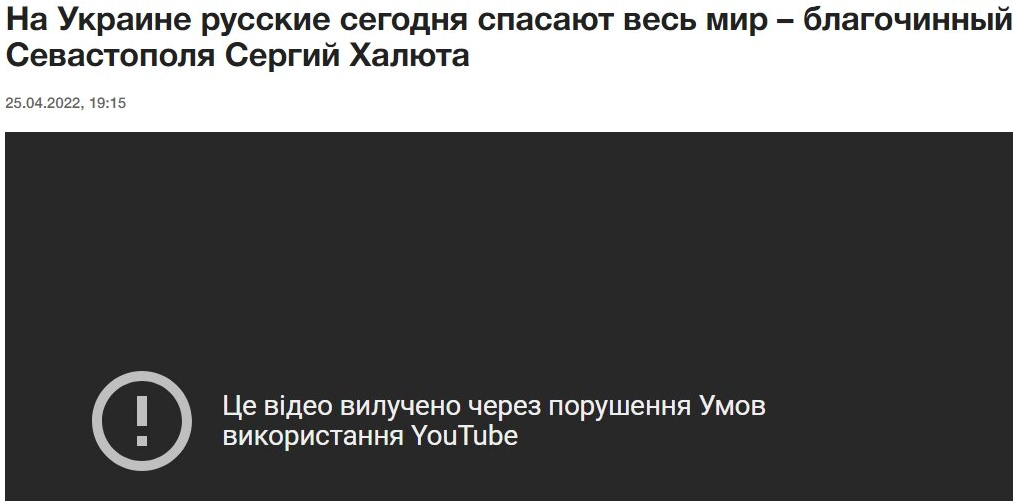 YouTube removes interview with the dean of Sevastopol UOC (MP) cathedral who is a russia apologist