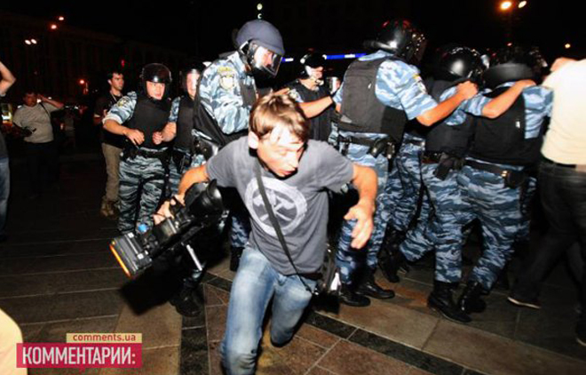 "Беркут" повалив з ніг оператора "5 каналу", коли той знімав розгін акції протесту