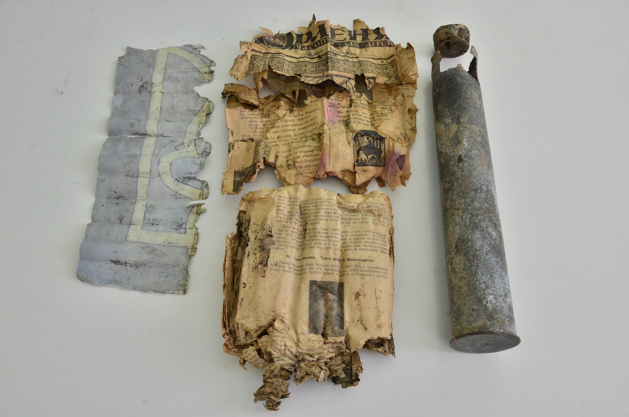 "На понищеному часом папері все ж таки впізнаємо герб Тризуб, часопис "Орленя", фрагменти сторінок із книги про історію України. Вміст гільзи був герметично закритий спеціально виготовленим корком. Той, хто її закопав заради своєї безпеки, міг усе знищити, але, вочевидь, мав намір зберегти українське слово для себе і нащадків", – йдеться в дописі.