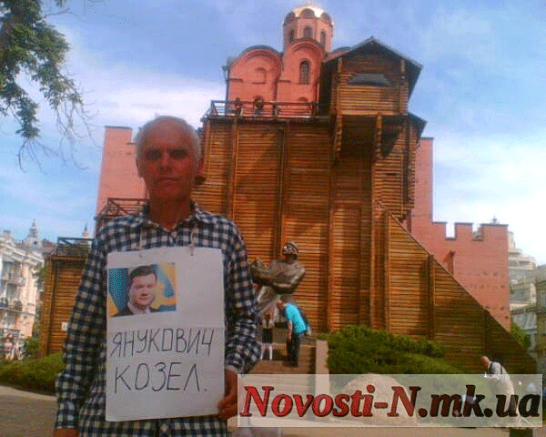Нагадаємо, 10 травня Анатолій Ільченко прогулювався в центрі Києва біля Золотих воріт з плакатом, на якому було написано «Янукович козел». Міліціонери, яких навколо Ільченко зібралося більше десятка, так і не зважилися його затримати. Проте 11 травня стало відомо, що стосовно скандального миколаївця було складено протокол про адміністративне правопорушення.