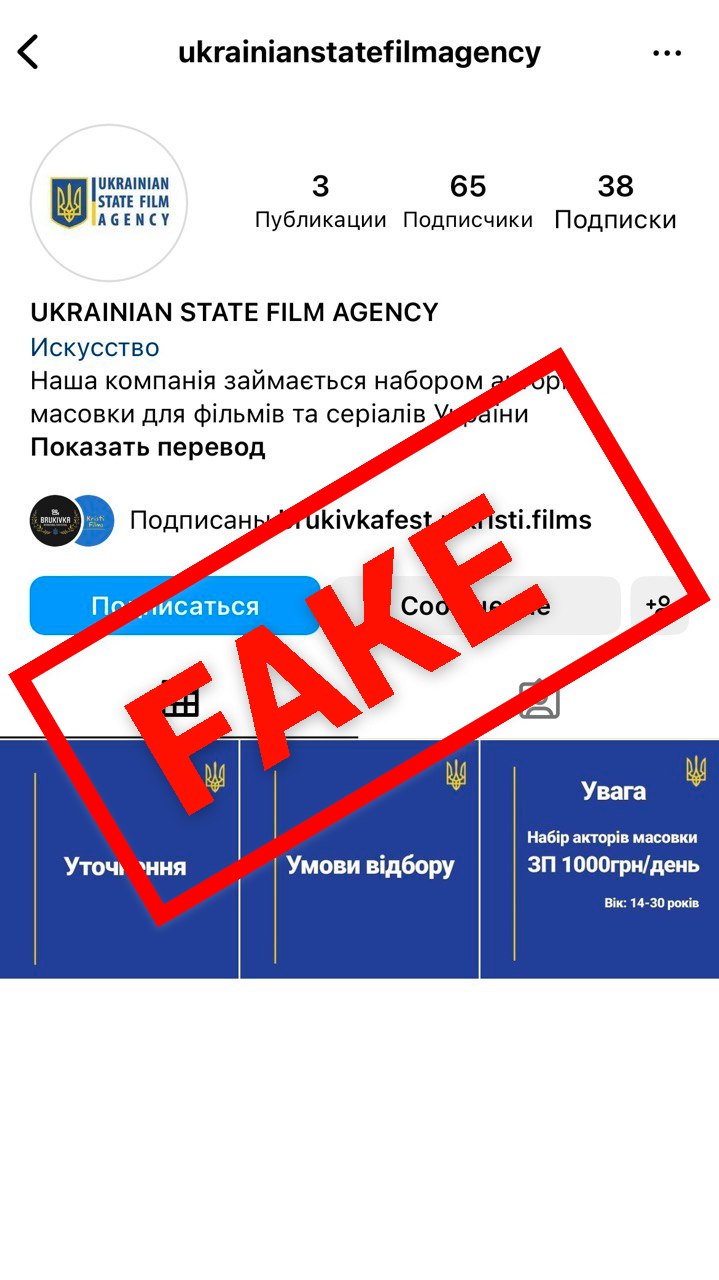 “У мережі Інтернет з’явилася сторінка, яка незаконно використовує офіційний логотип Державного агентства України з питань кіно і не є офіційною сторінкою Держкіно. Ця сторінка і вся інформація на ній – фейк!!!” – заявило агентство.