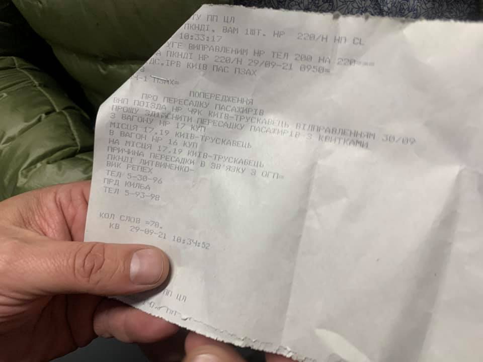 Журналістки попросили покликати начальника потяга. Він прийшов і показав телеграму-“попередження”, яку, за його словами, отримав щойно. У телеграмі зазначено, що пересадка необхідна “у зв'язку з організованою груповою поїздкою”.