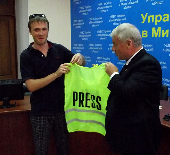 12 червня у Миколаєві начальник УМВС України в Миколаївській області, генерал-майор Валентин Парсенюк в ході засідання інформаційної ради при УМВС вручив миколаївським журналістам жилети з написом «Преса», повідомляють НикВести.
