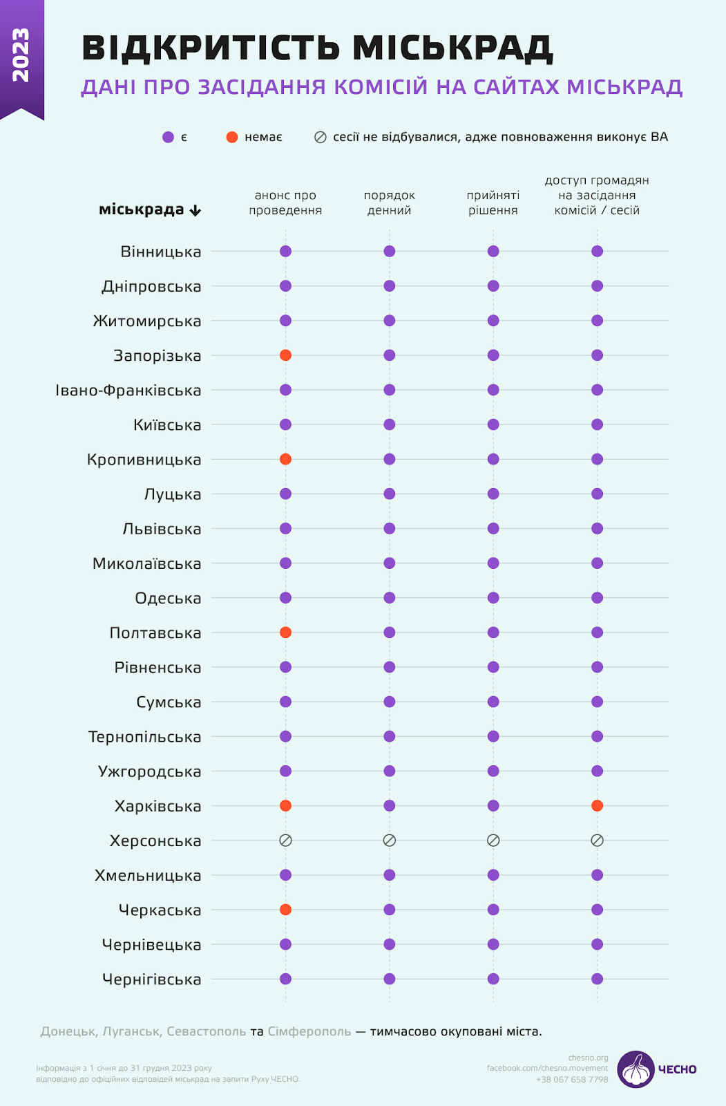 У 2023 році частина міських та обласних рад в Україні не публікувала інформації, яка має бути відкритою. Водночас є ради, які, навпаки, покращили інформування про роботу.