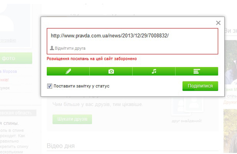 "Одноклассники" заборонили розміщувати посилання на Українську Правду (оновлено)
