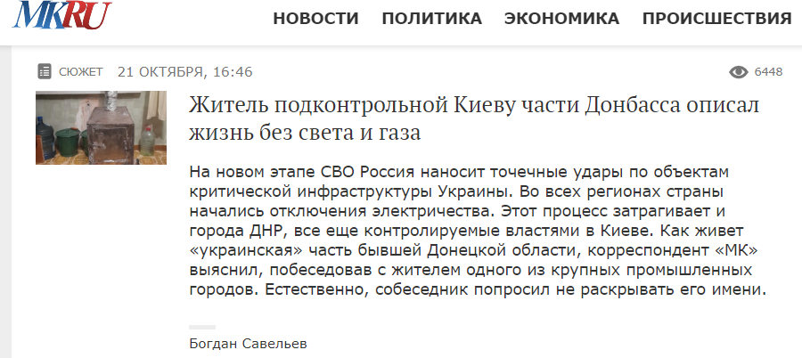 Скріншот з сайту МК.ру- Руслан Новіков, генеральный директор АО «Аргументы и факты». Видання публікує відверті фейки і бере активну участь в інформаційній війні проти України. Скріншот з сайту видання за 21.10.2022: