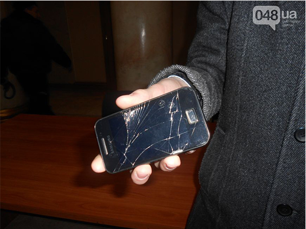 Коли Віра Запорожець знімала бійку біля міськради, один з тітушок з металевим кийком підбіг і штовхнув її в спину, щоб не знімала. Журналітка впала зі сходів. На її крики прибігла Світлана Городілова: "Я включила камеру на фотоапараті. У цю хвилину на мене накинулися двоє чоловіків, один в балаклаві зайшов за спину і заблокував мені руки, другий — літня людина з борідкою — відібрав у мене камеру. Я вимагала залишити мене в спокої і повернути техніку. Нападники сказали пред'явити посвідчення. Після того, як я показала посвідчення, мене відпустили і повернули фотоапарат", — розповіла журналістка.