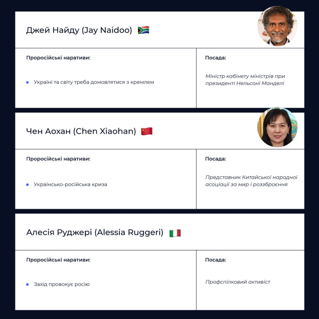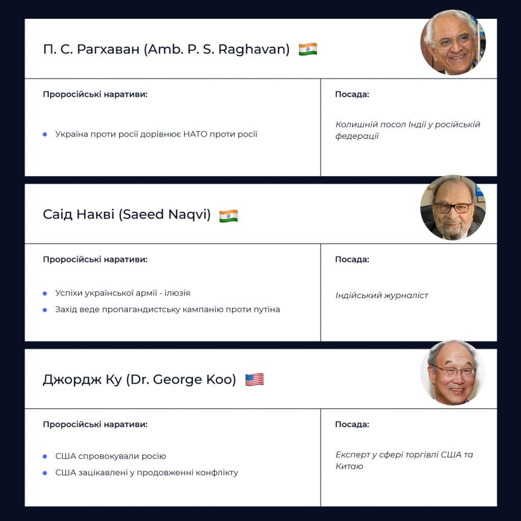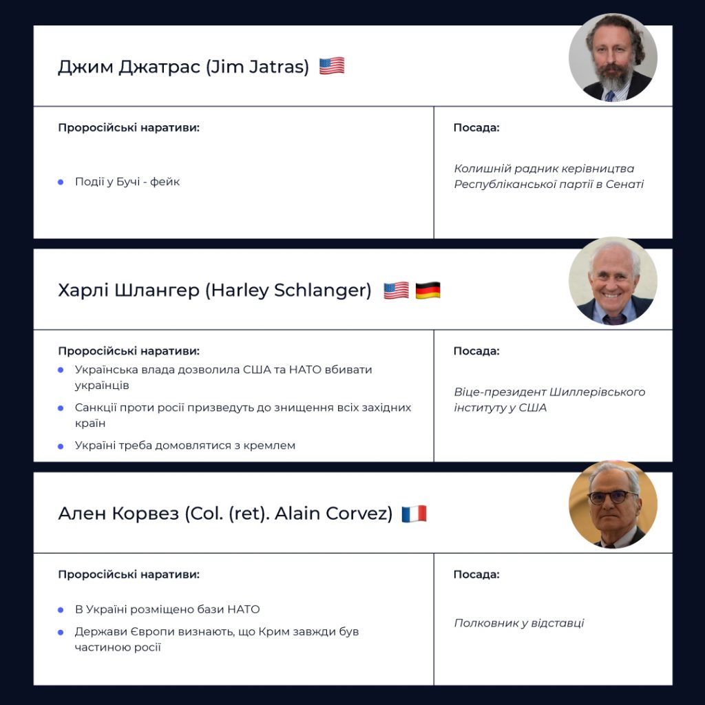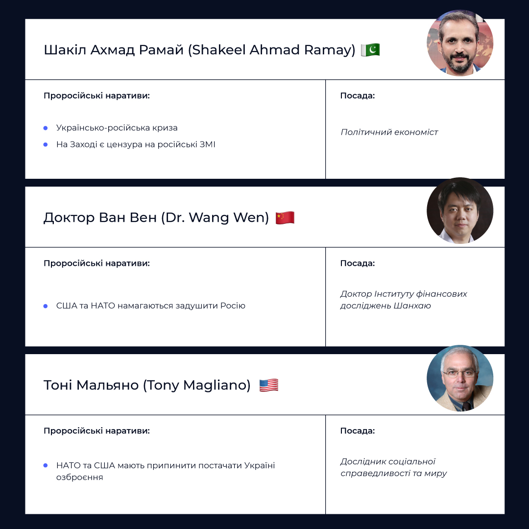 Аналітики Центру протидії дезінформації (ЦПД) виявили понад сотню представників міжнародної спільноти - науковців, військових, журналістів та політиків, які прямо або опосередковано просувають проросійські наративи.