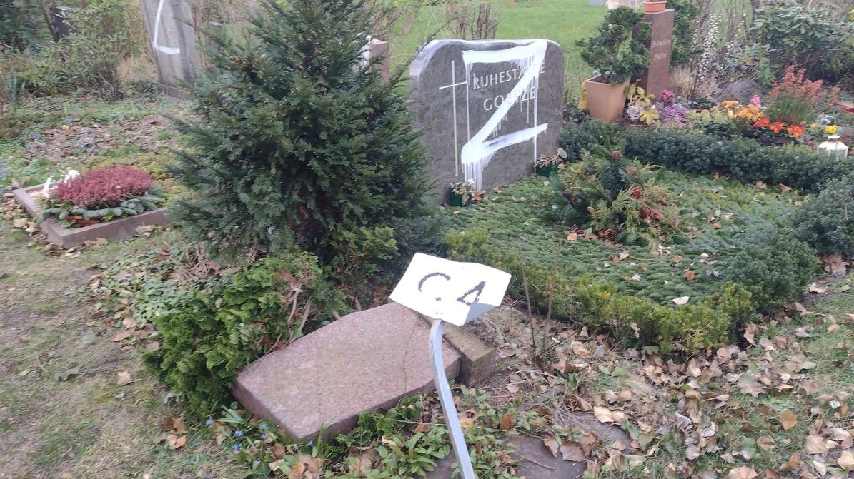 У вівторок, 19 березня, вандали нанесли той самий символ на 44 могили на цвинтарі в районі Вільмерсдорф. Деякі надгробні камені були повалені, також невідомі нанесли Z на пам'ятники.