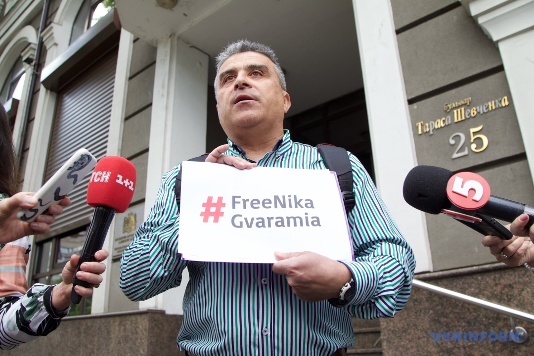 Українські журналісти провели біля посольства Грузії в Києві акцію на підтримку ув’язненого грузинського колеги, колишнього гендиректора грузинського каналу “Руставі-2” та нинішнього очільника телекомпанії “Мтаварі” Ніколоза Гварамії, повідомляє Укрінформ.
