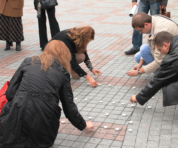 Після хвилини мовчання всі бажаючі запалили свічки. З маленьких свічок-лампадок вже традиційно виклали коротке імя Георгія Гонгадзе - Гія.