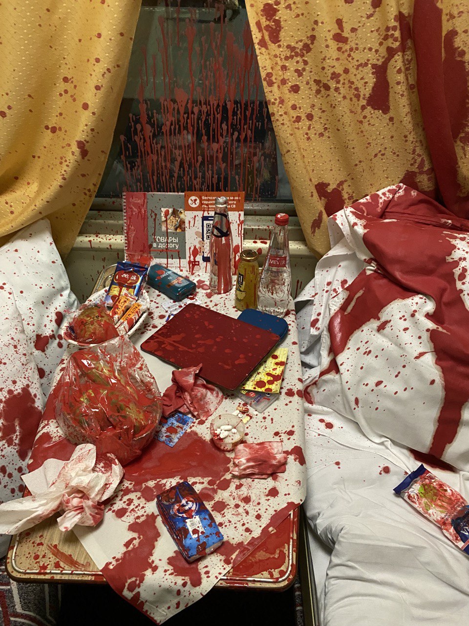 “Облили в купе олійною фарбою з ацетоном. Очі пече страшенно. Потяг Москва – Самара. Олійний запах по всьому вагону. Відправлення затримали вже на 30 хвилин. Спробую відмитися. Він вигукнув: “Муратов, ось тобі за наших пацанів”, – розповів головний редактор.