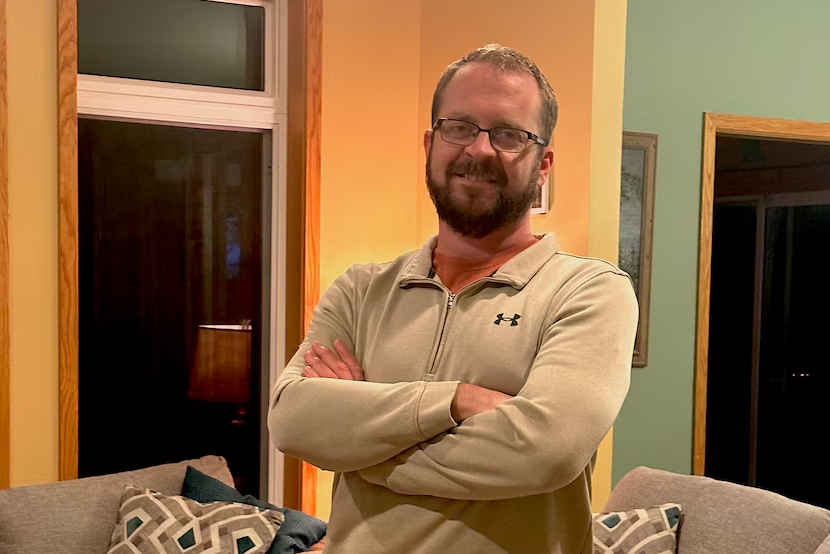 Денієл Свенсон стоїть у кімнаті, де його робот-пилосос зламали, фото – ABC News