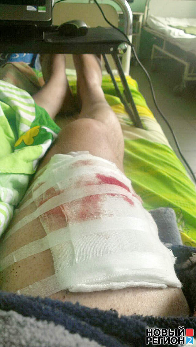 Потерпілого госпіталізували, йому наклали шви. Всього лікарі нарахували 7 поранень - 4 в обличчя, одне в шию, ще два - в стегно. Стан пацієнта оцінюється як задовільний.