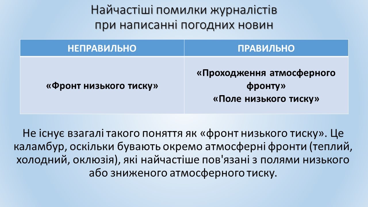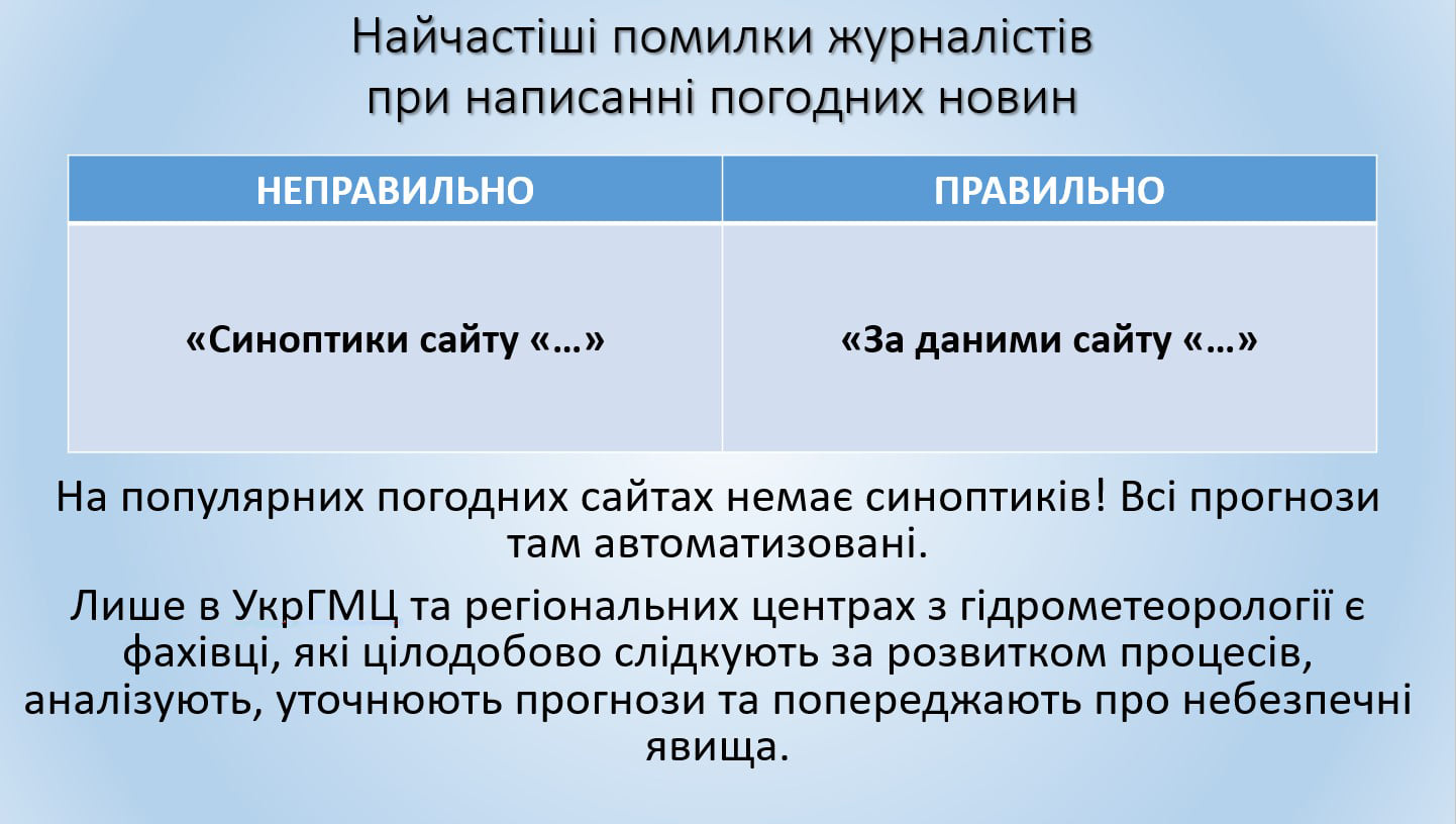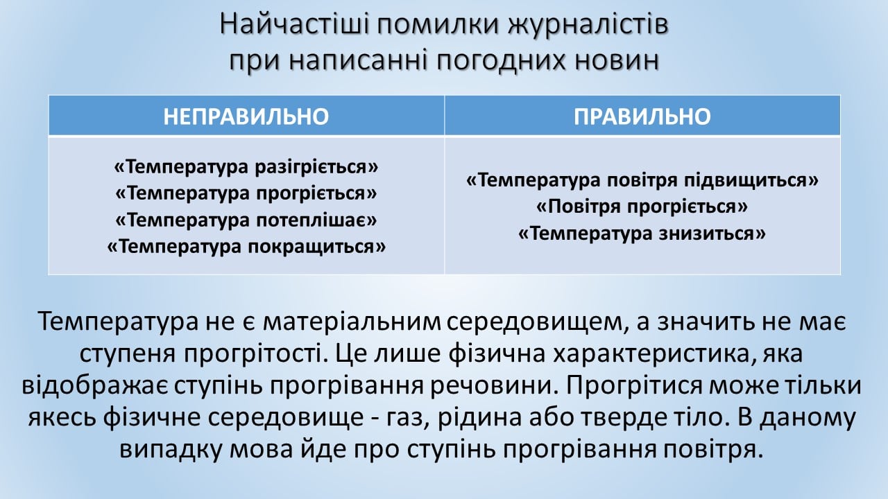 Український гідрометеорологічний центр зібрав найпоширеніші помилки журналістів та SMM-менеджерів інформаційних ресурсів при написанні погодних новин.