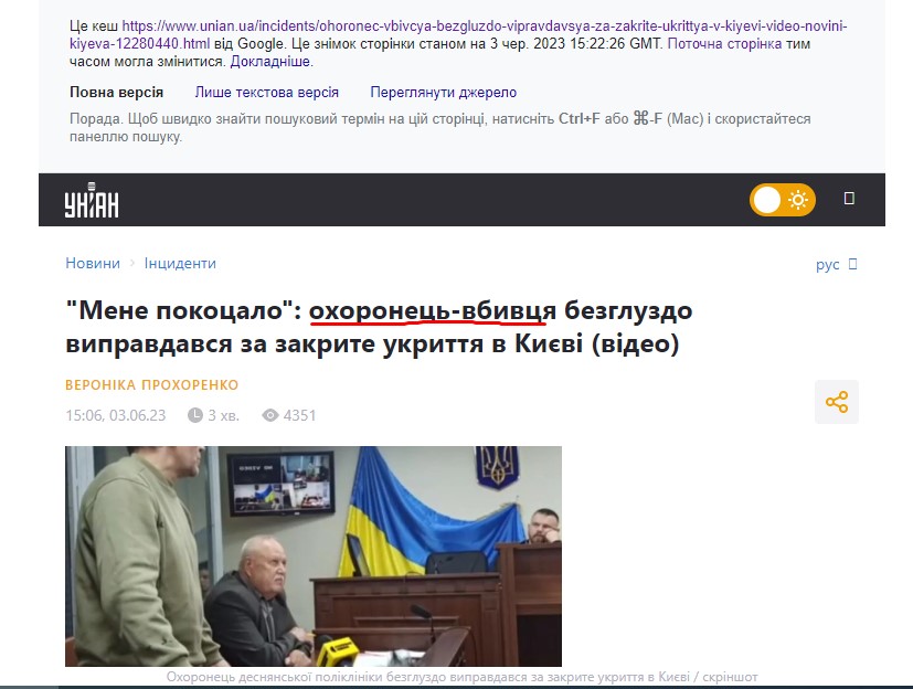 УНІАН назвав охоронця бомбосховища, якому ще не ухвалили вирок, убивцею. Після критики виправив