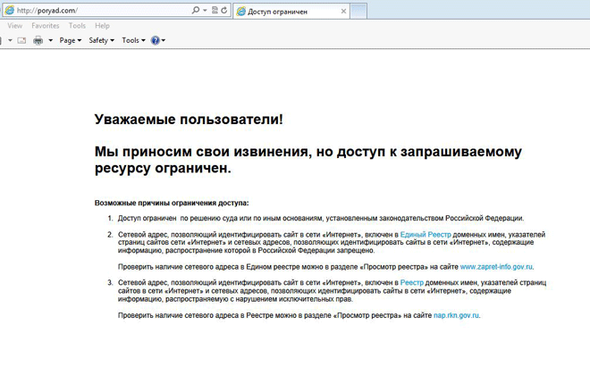Як повідомляє агентство, після влаштованої перевірки виявилося, що під час спроби заходу на сайт агенції з російського сегменту (через російський ip) з’являється напис (російською): “Уважаемые пользователи! Мы приносим свои извинения, но доступ к запрашиваемому ресурсу ограничен” – і далі пропозиція перевірити адресу сайту в реєстрі заборонених.