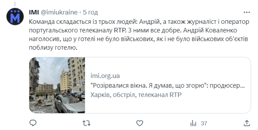 Відтепер соціальна мережа відображає тільки фотографію, яка є обкладинкою до самої новини. Ось приклад, який вигляд зараз має посилання на новину в Х: